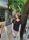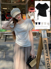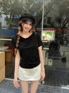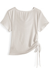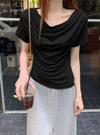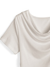 カットソー素材を使用し、ナチュラルな落ち感を演出するTシャツ。ネックラインにたっぷりとドレープを入れ、ボリューム感を演出。