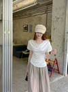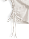 片側にあしらったドロストリボンが、ちょっとしたワンポイントとして映える。