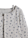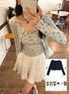 小さめのフラワー柄が可憐な印象を与えるアンサンブル。表面感のあるリブ素材が、こなれた雰囲気をプラス。