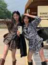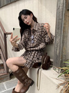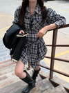 シックなチェック生地にウエストのシャツ巻き風デザインが目を惹くアイテム。ウエストマークすることで腰の位置を高く見せてくれ、スタイルアップ効果◎。