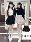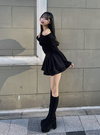二層に重なったボリューミーなフレアシルエットが魅力のミニスカート。