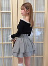 細かいギンガムチェック柄が涼しげで、清楚な雰囲気漂うミニスカート。タックを入れて生地を二層に重ねた、ボリューミーなフレアシルエットが魅力。