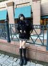 ふわっと軽く柔らかいエコファー素材を使用した、フェミニンムード漂うジャケット。ストライプファーが視覚的なアクセントとなり、存在感のあるコーデに仕上がる。