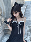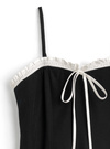 フロントのリボンやフリルディテールが華やかで、お嬢様気分になれるキュートなキャミワンピース。ハリのある生地感が上品でクラシカルな雰囲気をプラス。