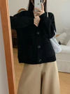 毛足が短めのミニシャギー素材で仕立てた、程よいボリューム感のカーディガン。しっかりと肉感のあるニットであたたかみがあり、着心地が良いのも魅力。