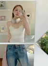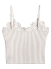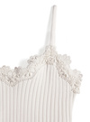 さらっとした風合いのリブニットで仕立てた着心地の良いキャミソール。胸元にあしらった繊細なレースの縁取りがフェミニンな雰囲気。