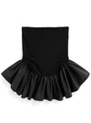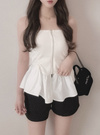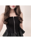 ボディラインを美しく引き立てるチューブトップスに、ペプラムシルエットをプラス。フロントのダブルジップがモードな印象を与え、調整次第で表情を変えるスタイリングが可能。
