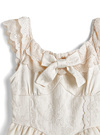 バックウエストと胸元の大きめリボンが、フェミニンなムードを高める。