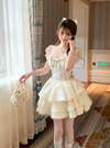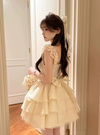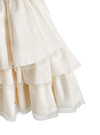 立体感のあるジャガード素材で、ドーリーな甘さを引き立てるミニワンピース。チュール入りのティアードスカートが、動くたびふんわり揺れて存在感を発揮。