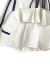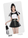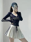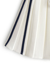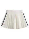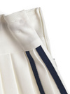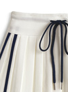 さっぱりとした素材感とプリーツで、スポーティな魅力をメイク。両サイドの配色ラインが縦を強調し、洗練された表情に。