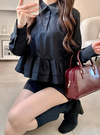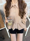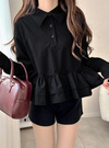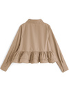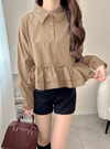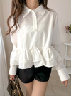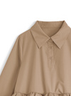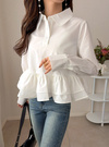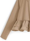 軽やかでハリのあるシャツ生地を使用した、上品な印象を与えるトップス。ウエストから広がるティアードフリルが、立体的でボリューミーなシルエットに。