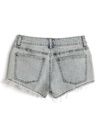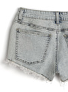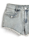 ヴィンテージライクな色落ち具合が魅力のデニムショートパンツ。裾にはフリンジ加工を施しこなれた印象をプラス。