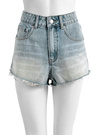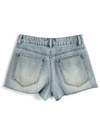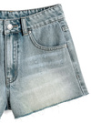 ベーシックデニムにさりげないダメージを加えたショートパンツ。裾は切りっぱなし風のフリンジ加工を施し、抜け感のある印象に。