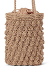 ナチュラルなペーパー素材をポコポコとしたポップコーン編みにしたキュートなバッグが登場。開き口はひもでキュッと絞ることのできる巾着仕様。普段持ち歩く物がしっかり収まるので、コンパクトながらに収納力も抜群。スッキリとした縦長フォルムがデイリーアイテムとして大活躍間違いなし。★裁断の関係で、柄の出方が写真と多少異なる場合があります。★内ポケット:オープンポケット1個付きサイズ・素材