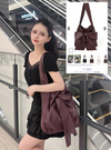 柔らかなフェイクレザーの質感が、コーデに品を添えるショルダーバッグ。大きなリボンがアクセントになって、女性らしさ溢れるデザインが魅力的。