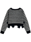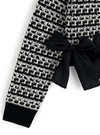クラシカルなツイード調の編み柄が目を惹く、上品な雰囲気のニットカーディガン。裾にはほんのりきらめくシフォン素材の立体リボンをあしらい甘さをプラス。