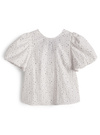 やや立体感のある細かいフラワープリントをあしらったブラウス。ぽわんとしたボリュームたっぷりのバルーンスリーブがポイント。