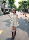 ふんわりと広がるティアードシルエットが、女性らしい雰囲気を演出。