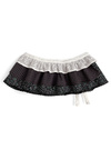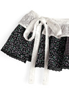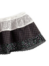 繊細なレースと花柄、チェック柄を切り替えた華やかなラップスカート。ウエスト部分にはリボンをあしらい、可憐なアクセントをプラス。