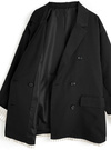 ハリのあるツイル生地で仕立てた、マニッシュな印象を与えるジャケット。シャープなテーラードカラーにダブルボタンのディテールが大人の品格を演出。