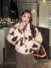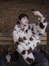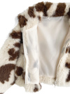 ふわふわのエコファーにインパクト抜群の牛モチーフの柄が目を惹くブルゾン。ゆったりめのサイズ感ながらショート丈のため、あまり着膨れせず着こなせる。