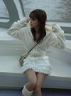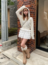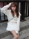 細かいケーブル編みがクラシカルな印象を与えるニットパーカー。薄手ながらふわふわでもちっとした、着心地抜群の風合い。
