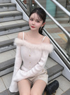 フェザーファーオフショルダーリブニットトップス[dr825]