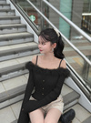 フロントに小ぶりなゴールドボタンを並べ、エレガントさをプラスした。