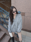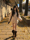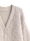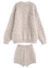 ふんわりとした起毛感のあるニット素材で仕立てたセットアップ。カーディガンは着丈を長めにし、ゆったりと着られるサイジング。