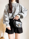 配色を効かせたハート柄でラブリーながら落ち着きを与えるプルオーバー。大胆なドロップショルダーとゆるやかなシルエットが、リラクシーな着心地を約束。