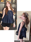 バックリボンデニムペプラムビスチェの商品詳細情報のページです。