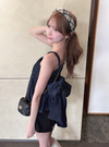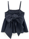 バックにあしらったリボンディテールで、背中も抜かりなく愛らしい印象に。しっかりとしたデニム素材がラインをキープし、トレンド感のある表情を生む。