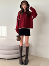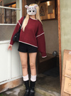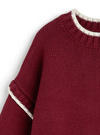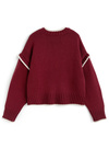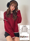 ざっくりと編まれたローゲージのニットプルオーバー。首元や裾などに配色デザインを施し、メリハリのある印象をプラス。