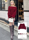 ハートモチーフの編み柄が乙女心をくすぐるニットトップス。折り返しのオフショルデザインが、女性らしいショルダーラインを引き立てる。