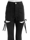 しっかりとしたツイル地が脚のラインを整え、美脚見えも狙える。両サイドにカットアウトとリボンをあしらい、遊び心を効かせた。
