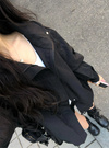 ビッグシルエットなので、厚手ニットやパーカーの上からでもゆったり羽織れる。