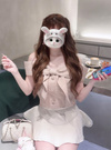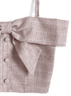 薄手のサマーツイード素材で仕立てた軽やかな着用感のトップス。フロント部分の大きなリボンモチーフが、華やかさたっぷりな印象。