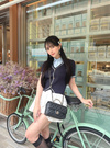 裾が少し開いたデザインなのでウエストやボトム見せが今っぽくまとまる。