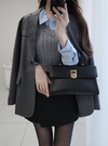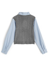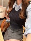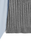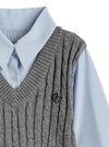 シャツとニットベストを重ね着したようなレイヤード風トップス。ケーブル編みニットにロゴ刺繍がきちんと感のある雰囲気を演出。