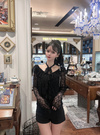 透け感のある生地が肌をさり気なく見せ、女性らしい印象を与える。