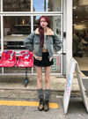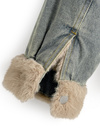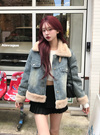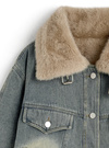 滑らかでふわふわのエコファー素材がアクセントになったジャケット。ヴィンテージ感のあるデニムとの組み合わせがセンスたっぷり。