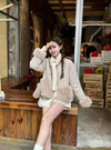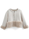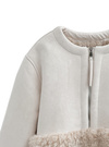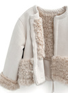 心地よさ抜群の柔らかで生地を使用し、とことん愛らしく仕上げたジャケット。ボリューム感のあるエコファーを裾と袖口にあしらった華やかさをプラス。