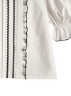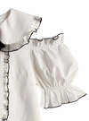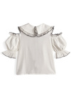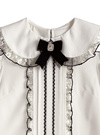 大ぶりの丸襟に繊細なレースとリボンをあしらった、とびっきりラブリーなブラウス。肩開きのパフスリーブデザインでさらに女の子っぽさを表現。