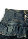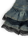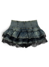 ティアードフリルにレースを重ねた、ガーリーなふりふりシルエットのスカート。ヴィンテージライクなデニム生地を使用することで、甘すぎない雰囲気。