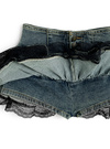 インパン付きレースフリルティアードデニムミニスカートパンツの商品詳細情報のページです。