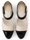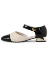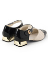 マットなキルティングとエナメル素材を組み合わせたこだわりのパンプス。ヒール部分をゴールドにすることで、華やかで洗練された雰囲気に。
