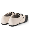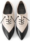 シャープな配色が目を惹く、バイカラーレースアップシューズ。つま先にかけて施された切り替えデザインが、足元をすっきりと見せてくれる。