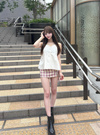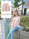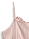 ナチュラルな風合いのコットン素材で仕立てたキャミビスチェ。胸元に添えた繊細なレースがさりげなく女性らしさを引き寄せる。
