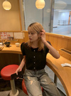コンパクトなシルエットで、ハイウエストボトムとも合わせやすい一着。