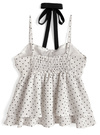 タイ付きドット柄ギャザーキャミソールの商品詳細情報のページです。